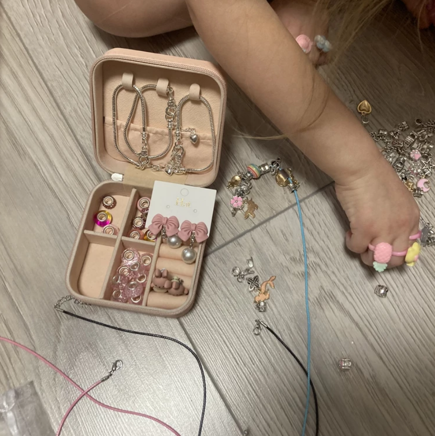 Хочете зробити особливий подарунок для маленької принцеси? Тоді набір для створення прикрас і браслетів – ідеальний вибір! Він дозволить вашій дівчинці проявити свою творчу натуру та створити унікальні прикраси. Стильна скринька і подарунковий пакет роблять набір ще привабливішим. Ваша дівчинка зможе самостійно створювати прикраси, розвиваючи фантазію, творчий потенціал та дрібну моторику. Це чудовий подарунок на день народження або будь-яке інше свято, який допоможе весело і з користю провести час.